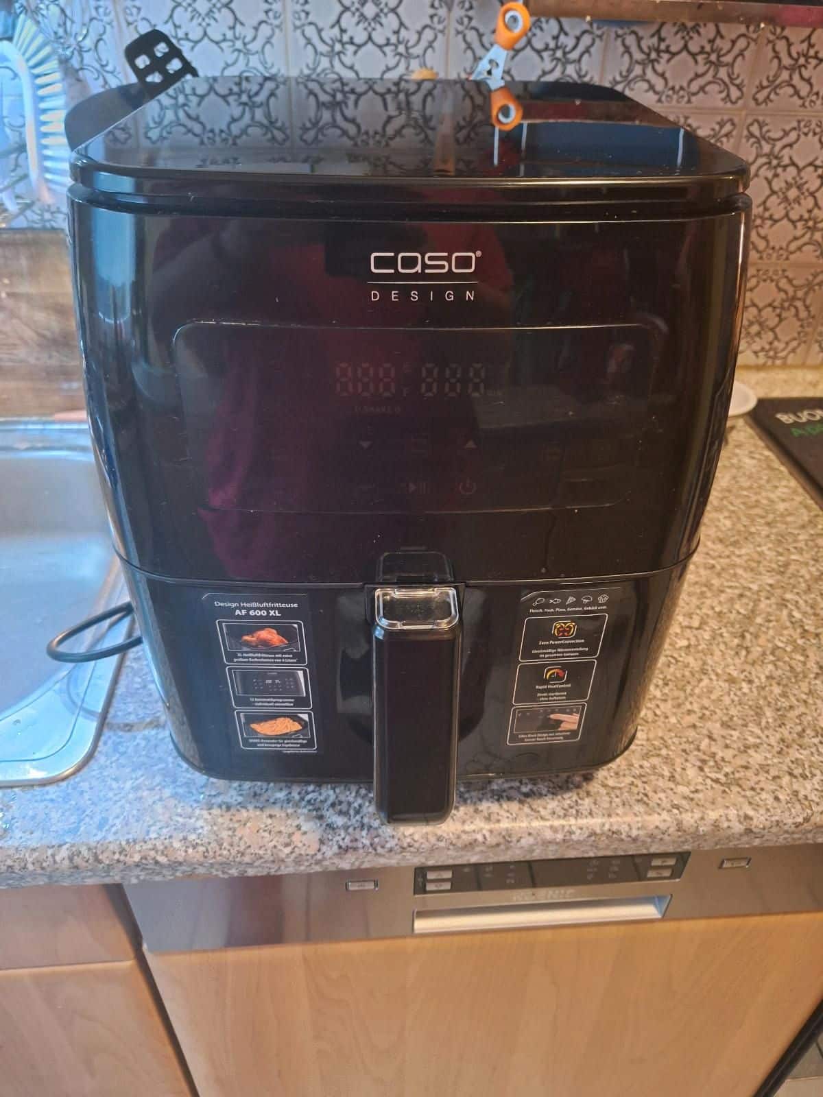 Moderne CASO AF 600 XL Heißluftfritteuse mit 6 Liter Korb, 12 Programmen, Sensor-Touch, 60-Minuten-Timer und spülmaschinenfest.